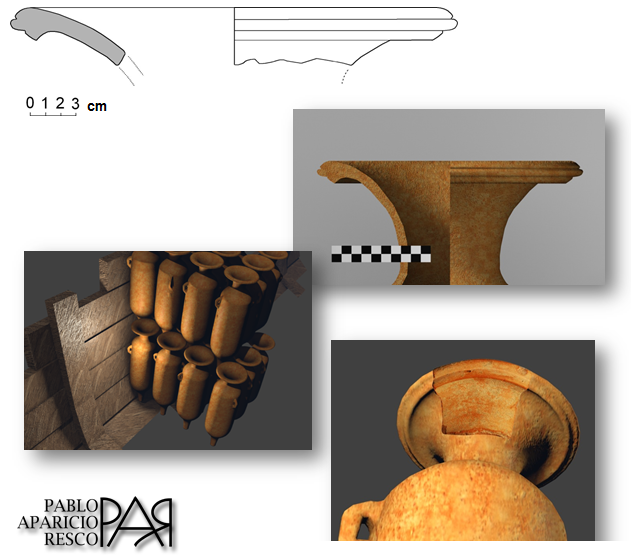 Como complemento a un trabajo de clasificación cerámica que tuvimos que hacer durante el Máster de Arqueología, creí conveniente realizar la reconstrucción tridimensional de las tipologías cerámicas que identifiqué, cuatro en total, para así realizar tanto vistas en 3D como precisas secciones. Para ello usé el software Blender. Además, tuve que realizar el dibujo arqueológico del fragmento conservado y para ello hice el dibujo a mano y lo digitalicé gracias al software Freehand.