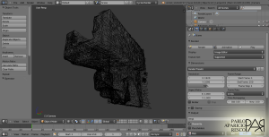 Posteriormente sólo queda acoplar este modelo fotogramétrico al edificio modelado con Blender a partir de la planimetría de AutoCad.