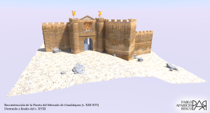 incorporar el modelo fotogramétrico del escudo heráldico a la reconstrucción virtual de la Puerta del Mercado para mostrar exactamente dónde estaba colocado y una aproximación a lo que debía ser su contexto. Esto me ha permitido realizar animaciones de calidad sobre el complejo que permiten acercarse un poco más a la