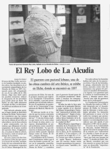 Este fragmento de escultura fue encontrado reutilizado en el pavimento de la ciudad: cuando ésta fue conquistada por los romanos no dudaron en usar algunas de estas firmes rocas, estuvieran o no esculpidas, para cimentar sus pasos. Los romanos hicieron muchas calzadas pero ¡a qué precio! Realmente no podemos saber si, como dijo Martín Almagro, este torso pertenece a una representación del mítico héroe fundador de la dinastía ilicitana y primer rey de la ciudad de Ilici (es decir, el yacimiento de la Alcudia), pero sí podemos asegurar que se le quiso representar como un guerrero temible, adornado con esa rodela apotropaica diseñada para amedrentar a sus enemigos. En el artículo que se reproduce a continuación (y al que se puede acceder desde