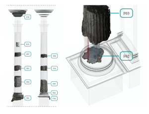 Anastilosis virtual de los fragmentos 3D de las columnas del Arco de Tito del Circo Máximo.