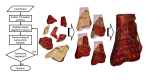 Proceso de anastilosis virtual de un hueso fragmentado.