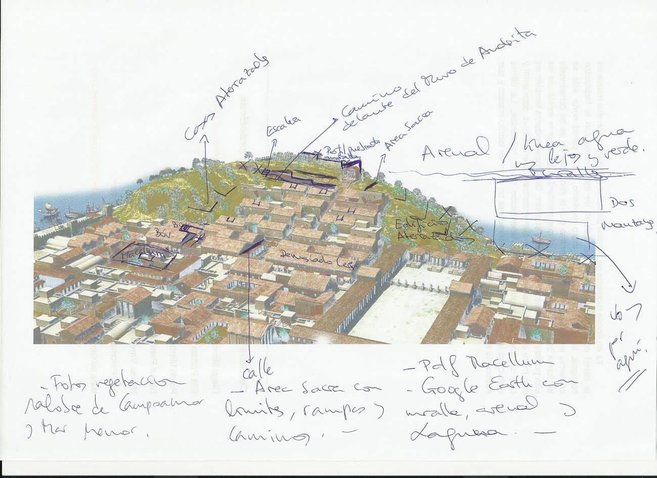 Lo importante, en mi opinión, es que sea un trabajo de repensar, de ida y vuelta, de mostrar ciertos resultados y, poco a poco, ir afinando las hipótesis, tal y como debería ser toda investigación arqueológica. En este sentido se muestra muy ilustrativa Una imagen muy ilustrativa del blog de Balawat donde se muestran anotaciones sobre una reconstrucción virtual sobre las modificaciones que deben realizarse en ella.