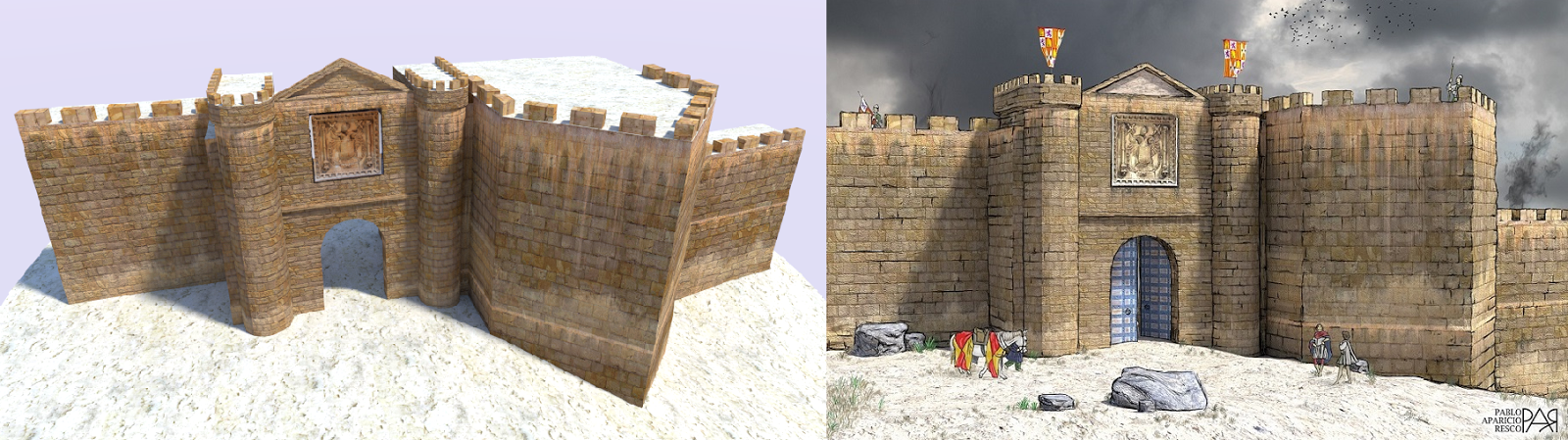 Hipótesis de reconstrucción virtual de una puerta medieval de Guadalajara hecha a partir de estudios históricos, histórico-artísticos y arqueológicos.