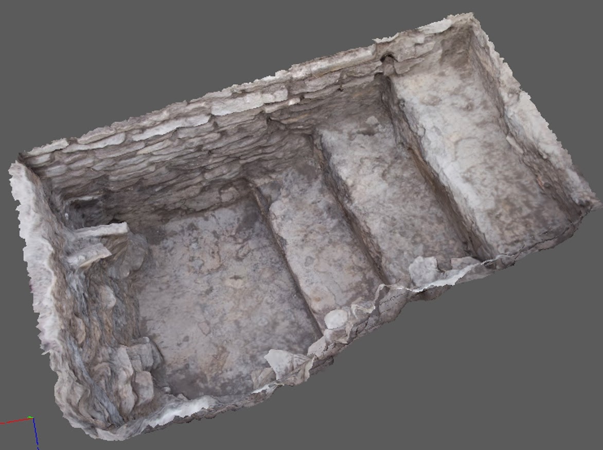 | Modelo fotogramétrico de un pozo de excavación o sondeo en el que se descubrieron unos escalones. |