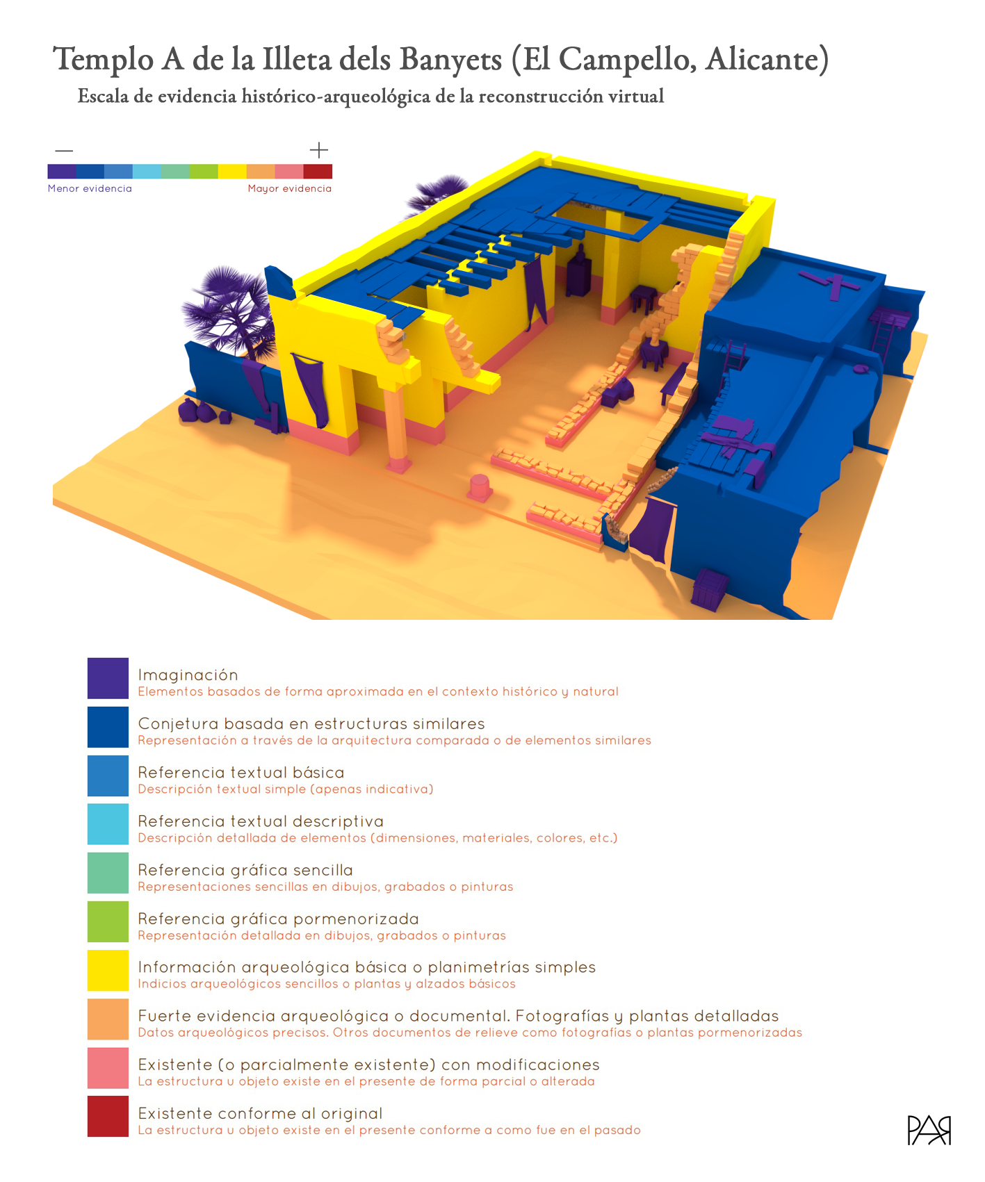 Hace unos meses llevamos a cabo una reconstrucción virtual del Templo íbero A del yacimiento de La Illeta dels Banyets (El Campello, Alicante). La realizamos tras un análisis histórico-arqueológico que nos permitió llegar a una serie de conclusiones que no resultaron del todo equivocadas. Una de las ventajas de la arqueología virtual, sin embargo, es la posibilidad de revisar nuestras hipótesis reconstructivas junto con la información que puedan aportar otros profesionales y, de este modo, actualizar nuestras reconstrucciones virtuales a tenor de los últimos descubrimientos.