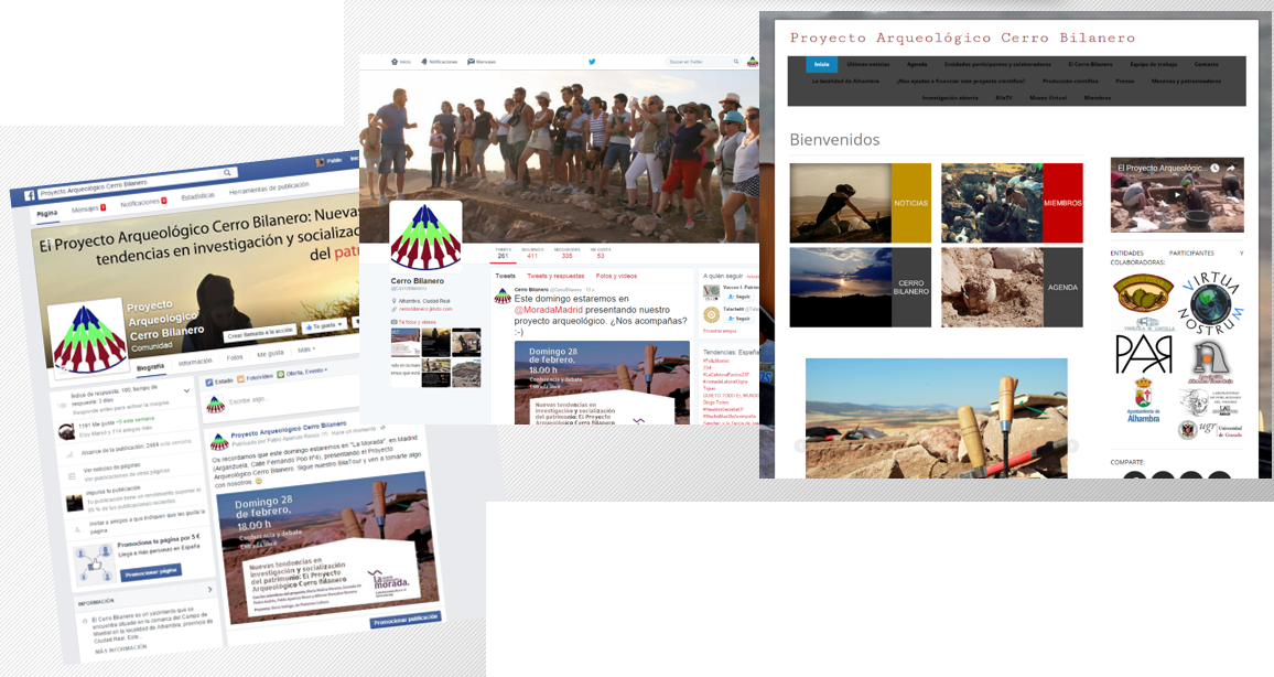 Finalmente, como no puede ser de otro modo en la actualidad, utilizamos las redes sociales como uno de los medios más importantes no solo para difundir nuestra actividad sino también para tener relación con cualquier interesado y con otros profesionales del sector. Utilizamos sobre todo Facebook y Twitter pero también tenemos Web propia actualizada o canal de vídeos en Youtube y página web propia: www.cerrobilanero.com