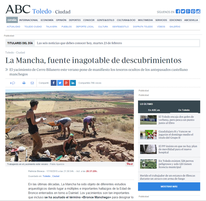 Por supuesto, no nos olvidamos de la difusión en medios de comunicación y prensa. Hemos podido presentar el Cerro Bilanero en programas de radio y se han hecho eco del proyecto diversos medios de prensa como diarios locales de Castilla-La Mancha o el propio ABC. Esto también resulta fundamental para llegar a un público que normalmente no se interesaría por conferencias específicas de arqueología, por ejemplo.
