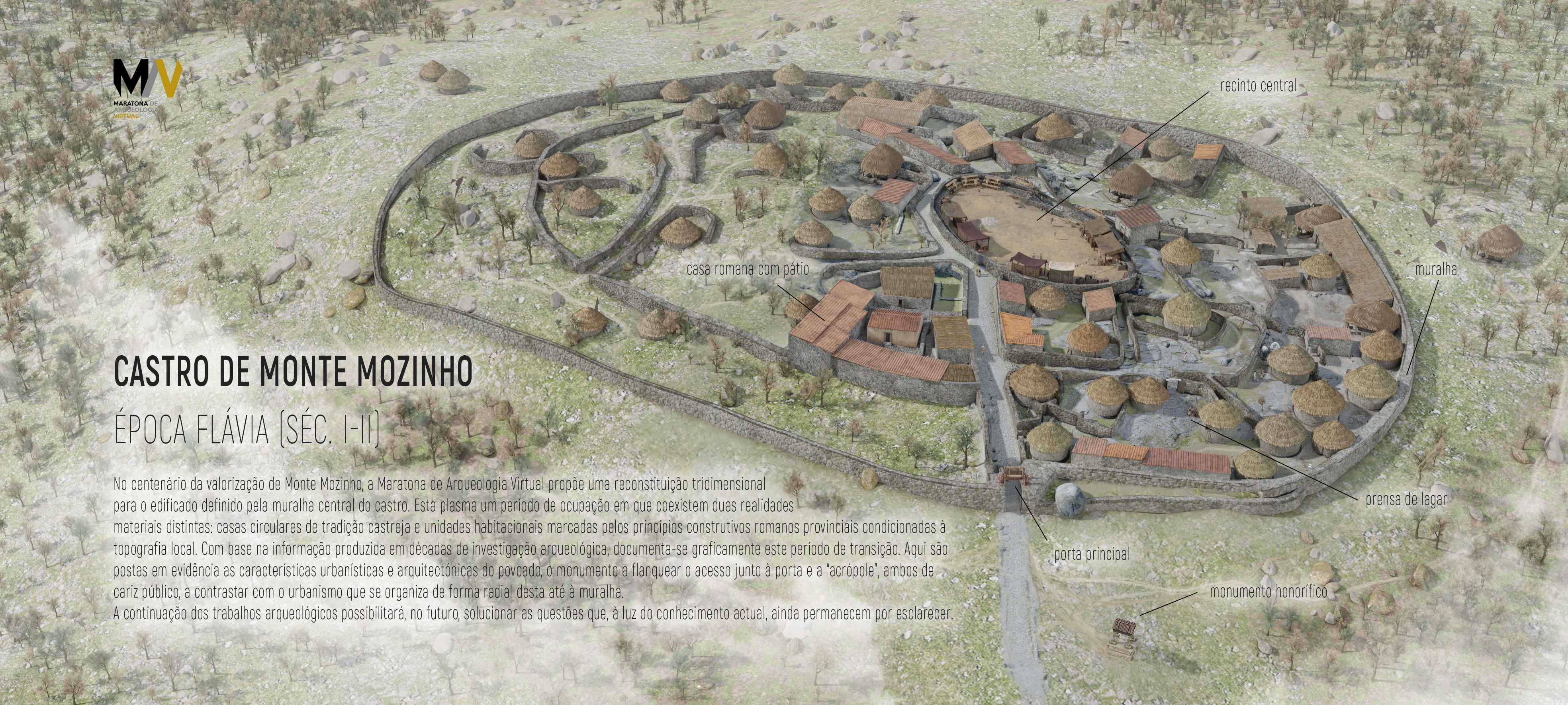 Entre el 13 y el 18 de mayo de 2019 se llevó a cabo la quinta Maratona de Arqueología Virtual (MAV) en la que, tras varios años sin poder hacerlo, participamos para colaborar en la reconstrucción virtual colectiva del Castro de Monte Mozinho (Penafiel, Portugal) en época Flavia (s. I-II d.C.).