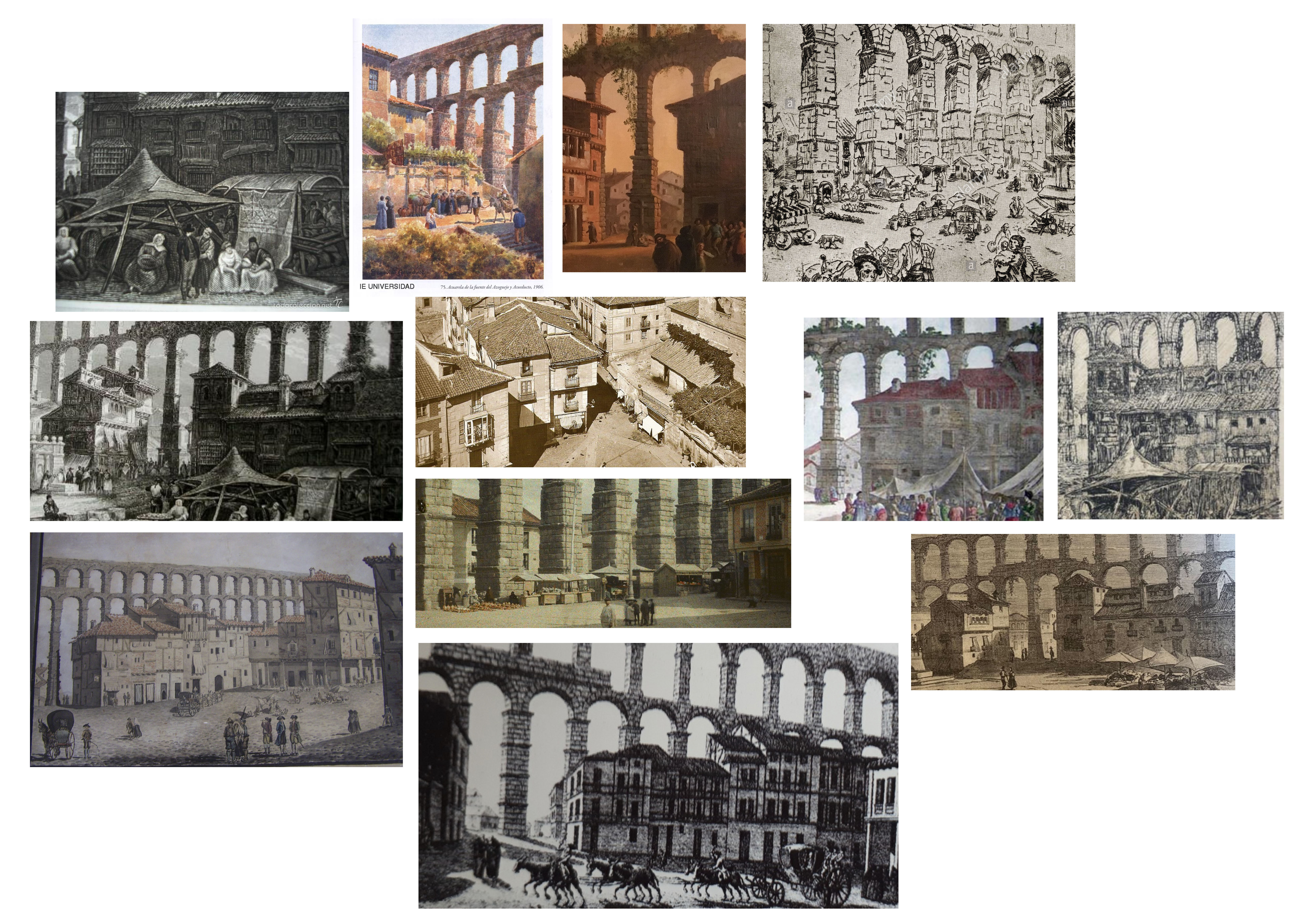 Para recrear este día histórico para la villa de Segovia nos basamos no solo en documentación escrita de la época que recoge, en forma de crónica, el momento en el que se alzaron las imágenes devocionales para ser dispuestas en el acueducto, sino también en multitud de dibujos, grabados y fotografías antiguas, previas a la demolición de los edificios que formaban la plaza. Entre ellos, destaca la iglesia de Santa Columba, que se levantaba al norte de la Plaza del Azoguejo, con su ábside frente al Acueducto, y de la que hoy solo queda el recuerdo.
