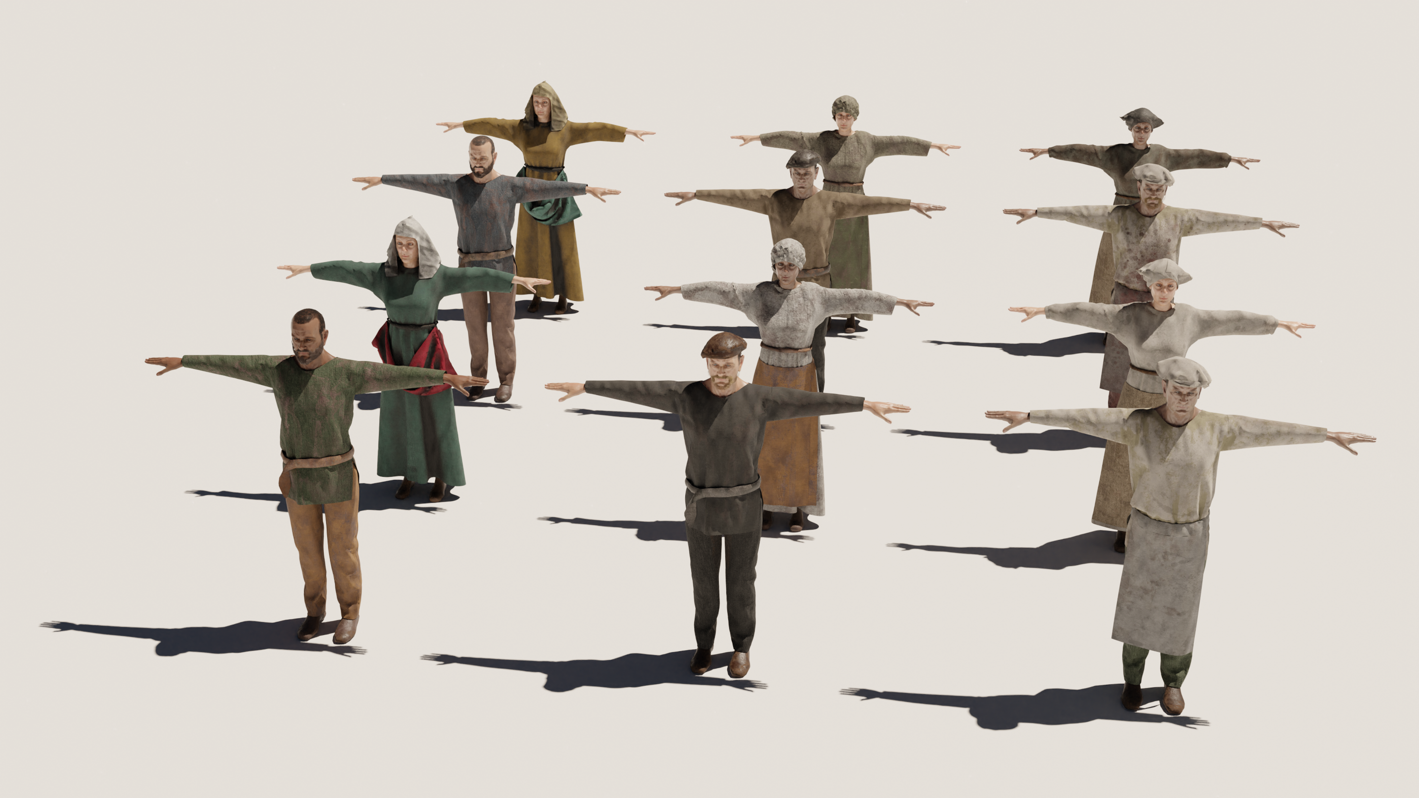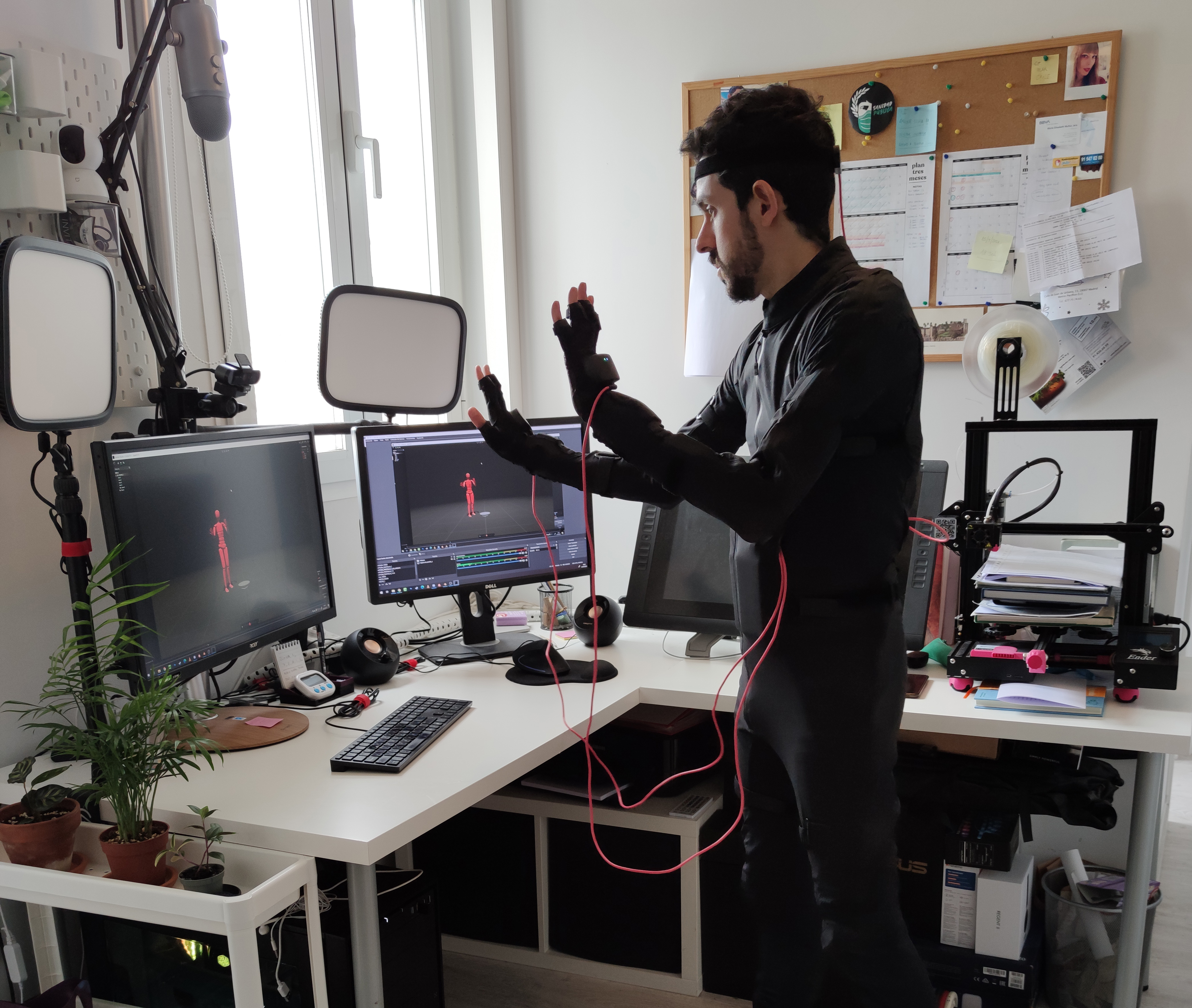 El último paso previo al renderizado de imágenes estáticas y animaciones 3D fue el añadido de personajes. Para ello diseñamos distintos tipos de personajes mid-poly con Character Creator, Blender y Substance Painter que nos permitieran ambientar la escena sin sobrecargarla y hacer animaciones fluidas. El diseño de animación se llevó a cabo gracias al traje de captura de movimiento Rokoko, que puso en nuestras manos las herramientas más eficientes del momento realizar de forma rápida poses y animaciones realistas.