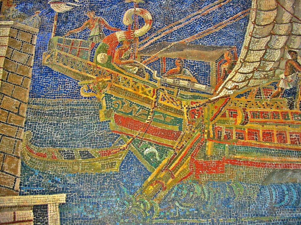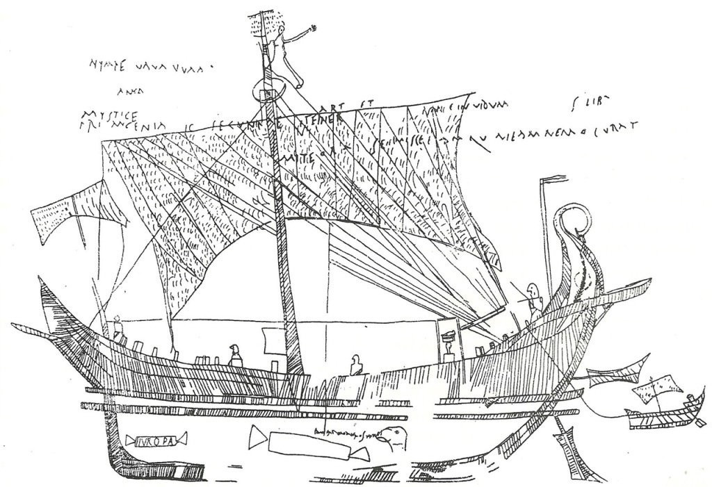 Para ello, nos servimos también de múltiples referencias iconográficas, que son las que nos permiten entender cómo fueron las naves mercantes romanas (corbitae o naves onerarias), ya que carecemos de un amplio registro arqueológico de las mismas: solo nos quedan restos de partes de los cascos y su arquitectura en los pecios hundidos pues son las partes que quedan cubiertas por las ánforas y la arena y, por lo tanto, protegidas del oleaje.