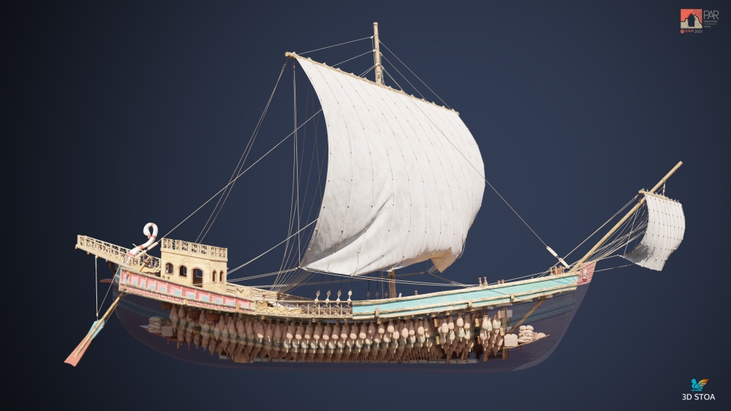 Aún nos quedan muchos detalles que completan la reconstrucción y que os contaré en otras entradas del blog: ¿sabéis que se ha encontrado la llave de su bodega? Y los famosos lingotes del Bou, ¿Dónde se dispondrían y para qué servían? ¡Pronto más! Por el momento disfrutad de las vistas y navegad como nunca hasta ahora , en este barco romano del s. I d.C.