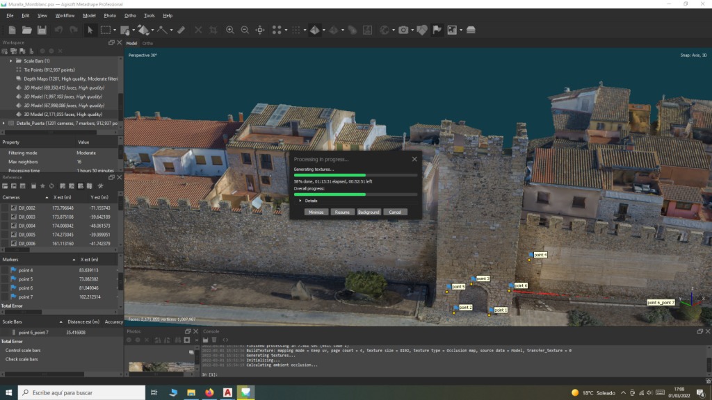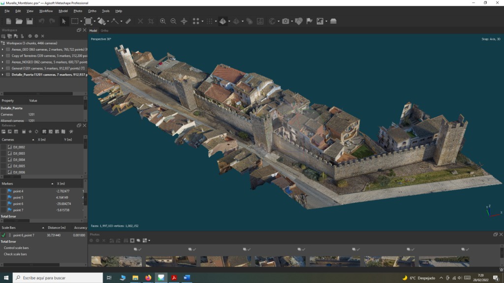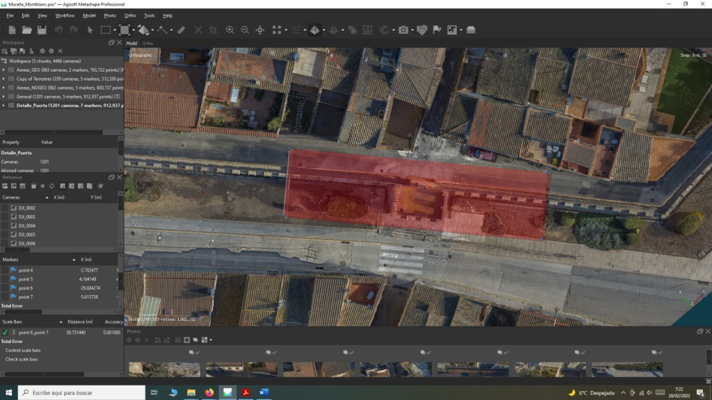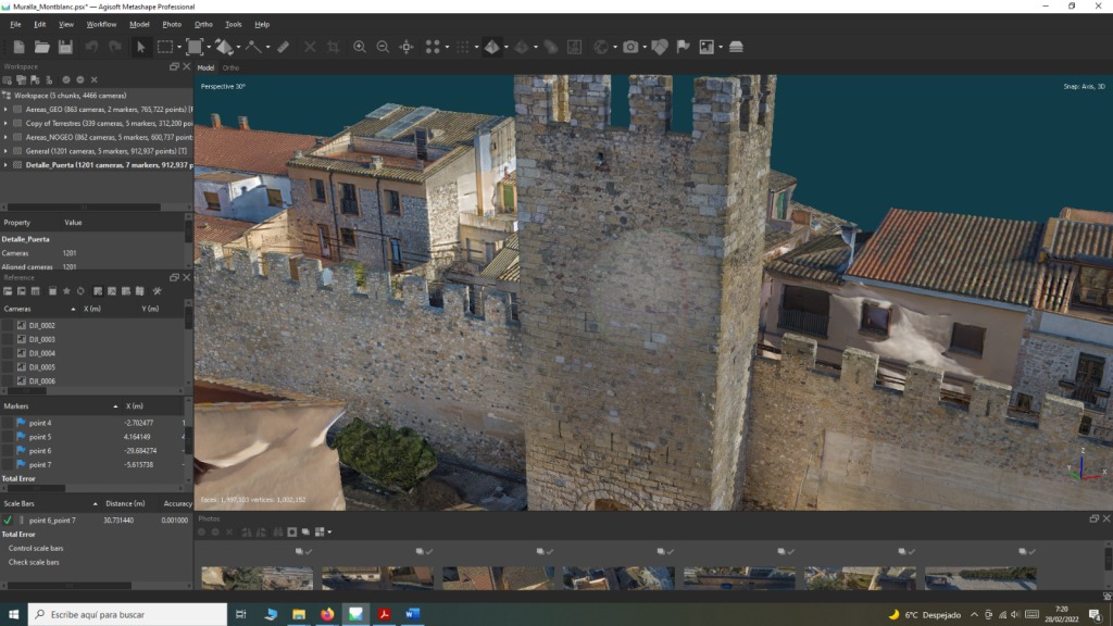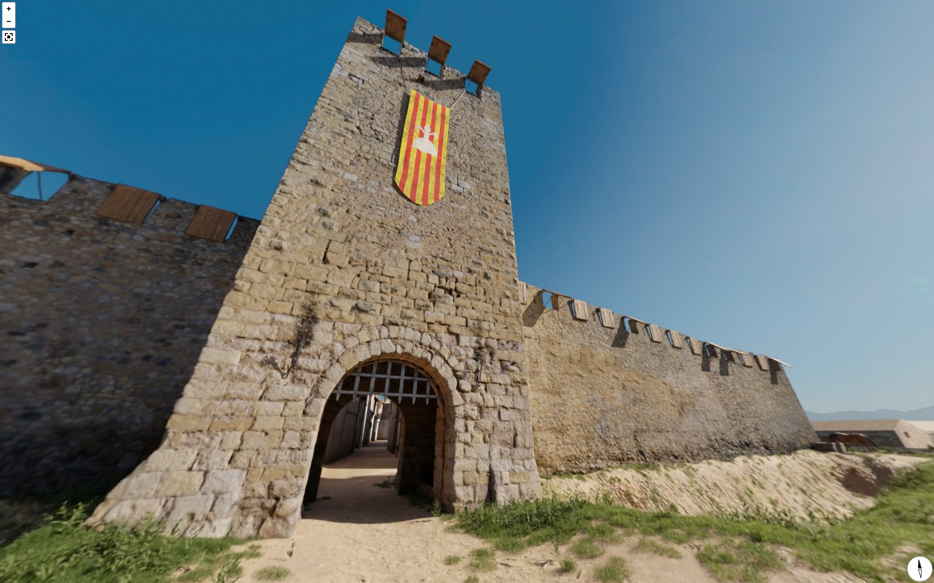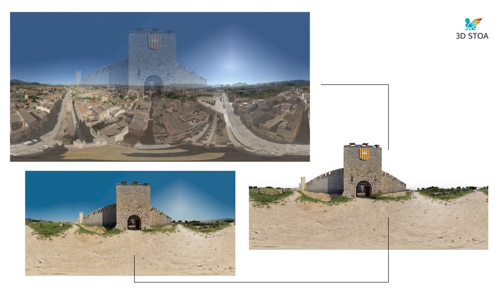En este sentido, resultaba fundamental disponer de una base 3D precisa del Portal y las murallas adyacentes y, ya que se conserva esta zona en un relativo buen estado y sin intervenciones profundas, llevamos a cabo la documentación 3D fotogramétrica del bien patrimonial para su integración en la escena virtual, así como la toma de varias fotografías 360º con dron para obtener referencias del horizonte natural de la zona.