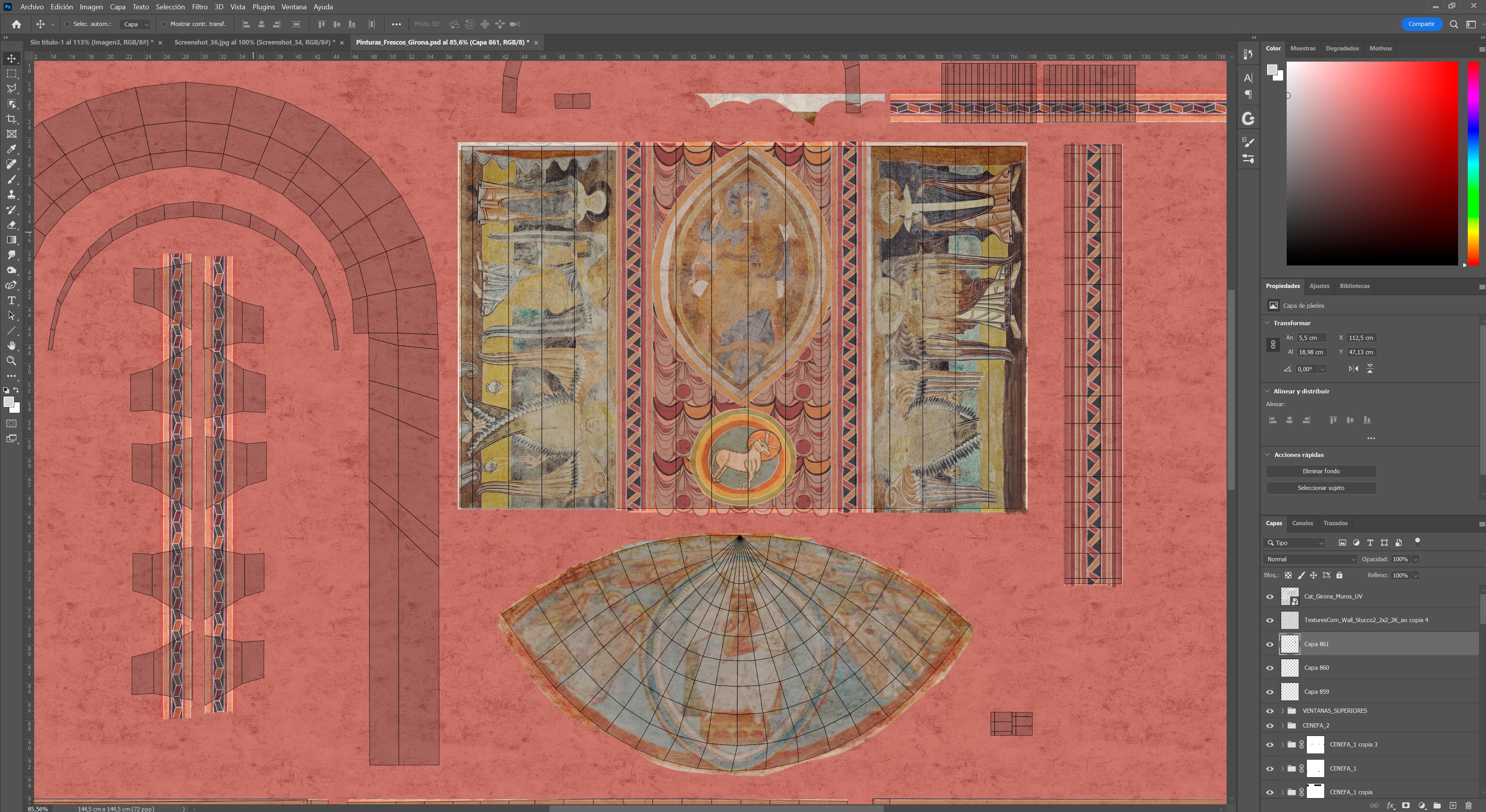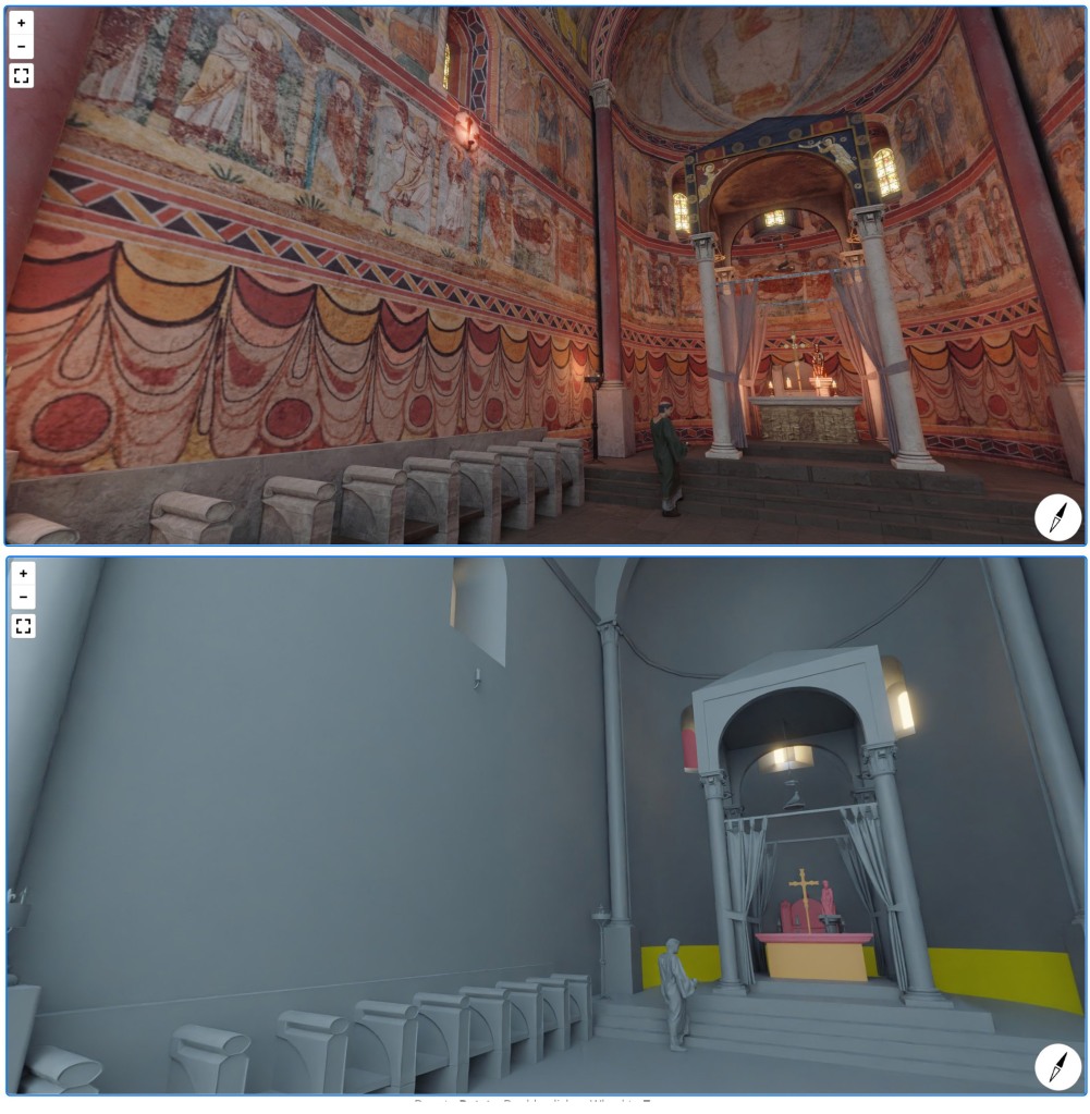 El trabajo de reconstrucción desarrollado se ha realizado para el diseño de una aplicación de Realidad Virtual 360º desarrollada por Digivision que permitirá al espectador sumergirse en el ábside románico de la catedral de Girona y poder cambiar entre la vista fotorrealista de la reconstrucción y la vista de la escala de evidencia de la misma.