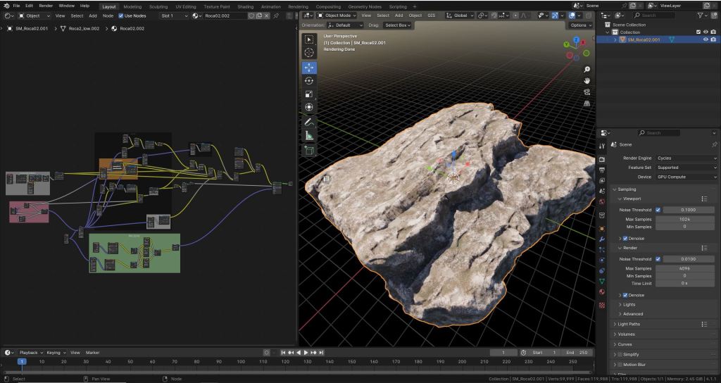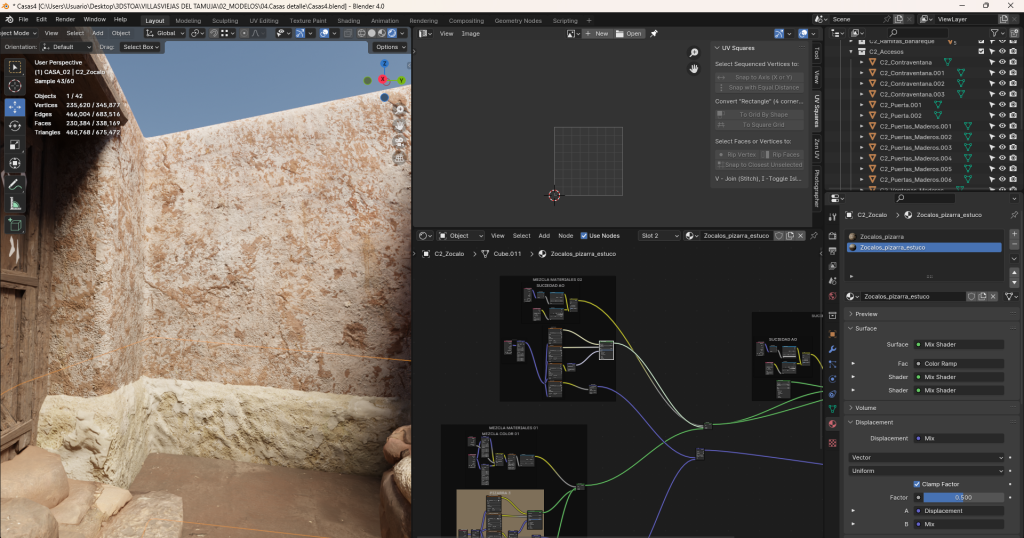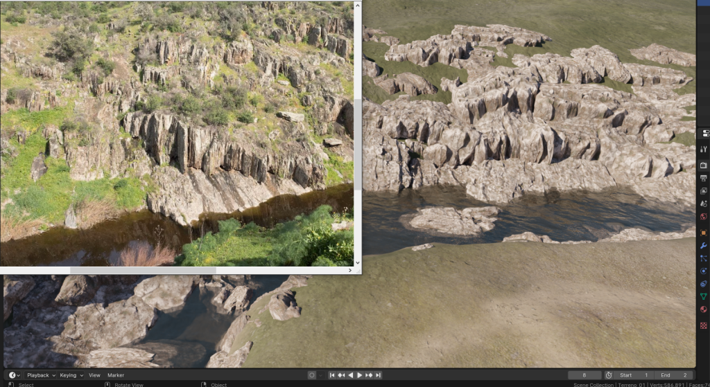 Pero podemos ir mucho más allá y, en colaboración con el IAM (CSIC), recibimos el encargo al equipo de 3D Stoa de dar vida al castro de Villasviejas a partir de toda esta información y primeras hipótesis reconstructivas. El primer paso fue el diseño del terreno, para lo cual utilizamos la documentación 3D LiDAR del Instituto Geográfico Nacional (IGN). Completamos el modelo 3D de la orografía real con técnicas de esculpido digital y texturizado que nos permitieron conseguir el realismo adecuado.