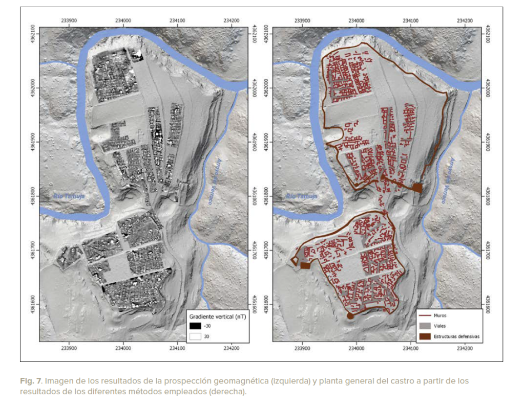 Gracias al uso de técnicas de arqueología no invasiva -en este caso magnetometría, georradar y tomografía eléctrica– el equipo del Instituto de Arqueología de Mérida (CSIC) pudo «radiografiar» el terreno y observar un urbanismo complejo y denso en ambos recintos de la población. Los resultados de estas prospecciones, unidos a los de las excavaciones arqueológicas realizadas en el enclave, aportan la información necesaria para hacer una primera hipótesis de reconstrucción de este castro. Fue la labor del Dr. Victorino Mayoral y su equipo.