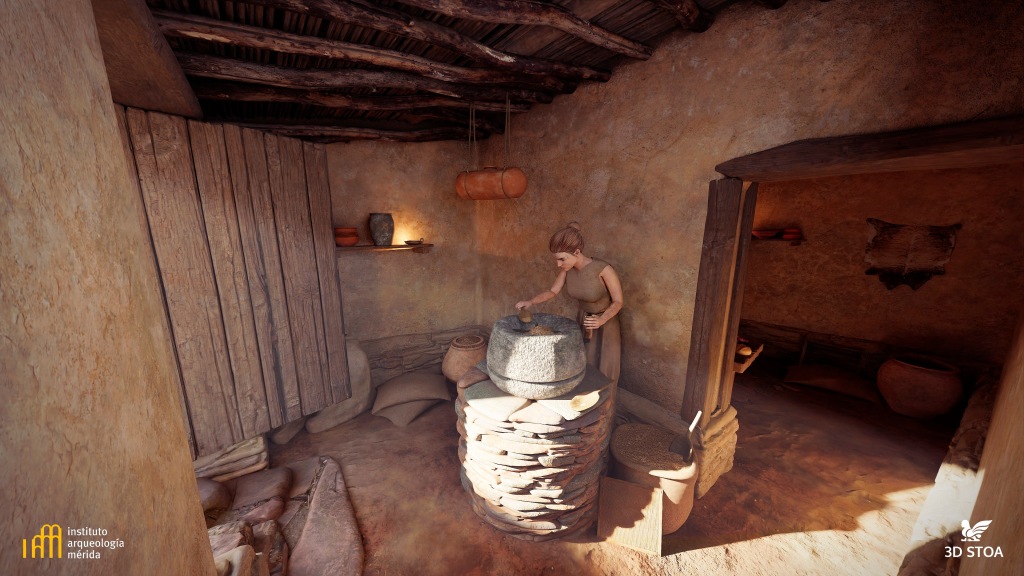 Pero, además, nos hemos metido dentro de estas casas para observar sus objetos y comprender cómo pudo ser su modo de vida. Esto nos permite observar, por ejemplo, cómo se molían las bellotas y otros cereales en piedras rotatorias y de vaivén, pero también conocer sus espacios de paso o las estancias con hogares.