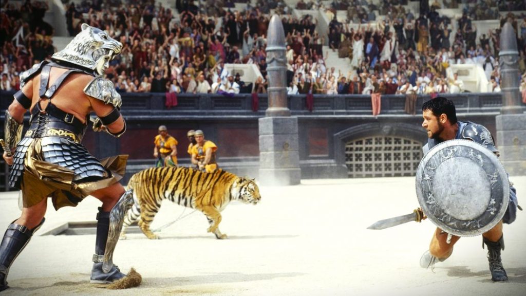 La nueva película de Ridley Scott puede ser visualmente impresionante pero no muestra ningún combate realista de gladiadores. Tampoco nos muestra una recreación realista de Roma. Todo es, por supuesto, ficción y espectáculo. El rigor -por mucho que diga el propio Ridley- está ausente. Por poner solo un ejemplo de bulto: el Coliseo no se encontraba sobre una colina sino, al contrario, en una hondonada (y eso, de hecho, permitió que en algunas, pocas, ocasiones se llevaran a cabo en él naumaquias, eso sí, nunca en la época que refleja la película).
