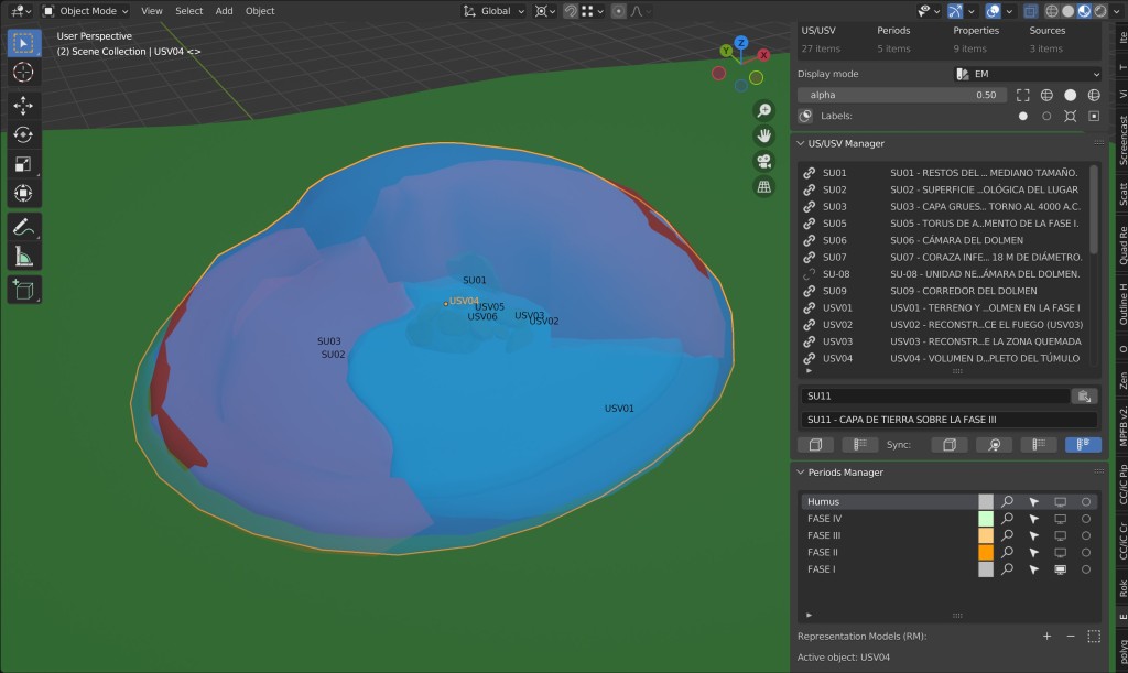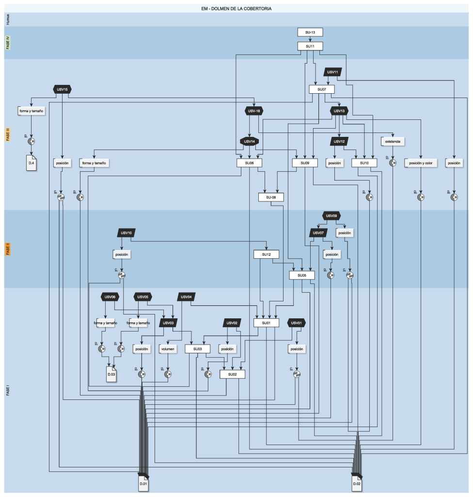 3) En tercer lugar, para garantizar el rigor científico y la transparencia en el proceso de trabajo, utilizamos Extended Matrix, una técnica de trazabilidad científica en reconstrucción virtual basada en la Matrix Harris, que nos permitió ejecutar las cuatro fases de la forma más cuidada posible, llevando un control preciso de los datos arqueológicos de referencia. Se trata de una herramienta de investigación que ayuda a tener el control de las razones que precipitan cada una de las decisiones tomadas durante el proceso de reconstrucción 3D.